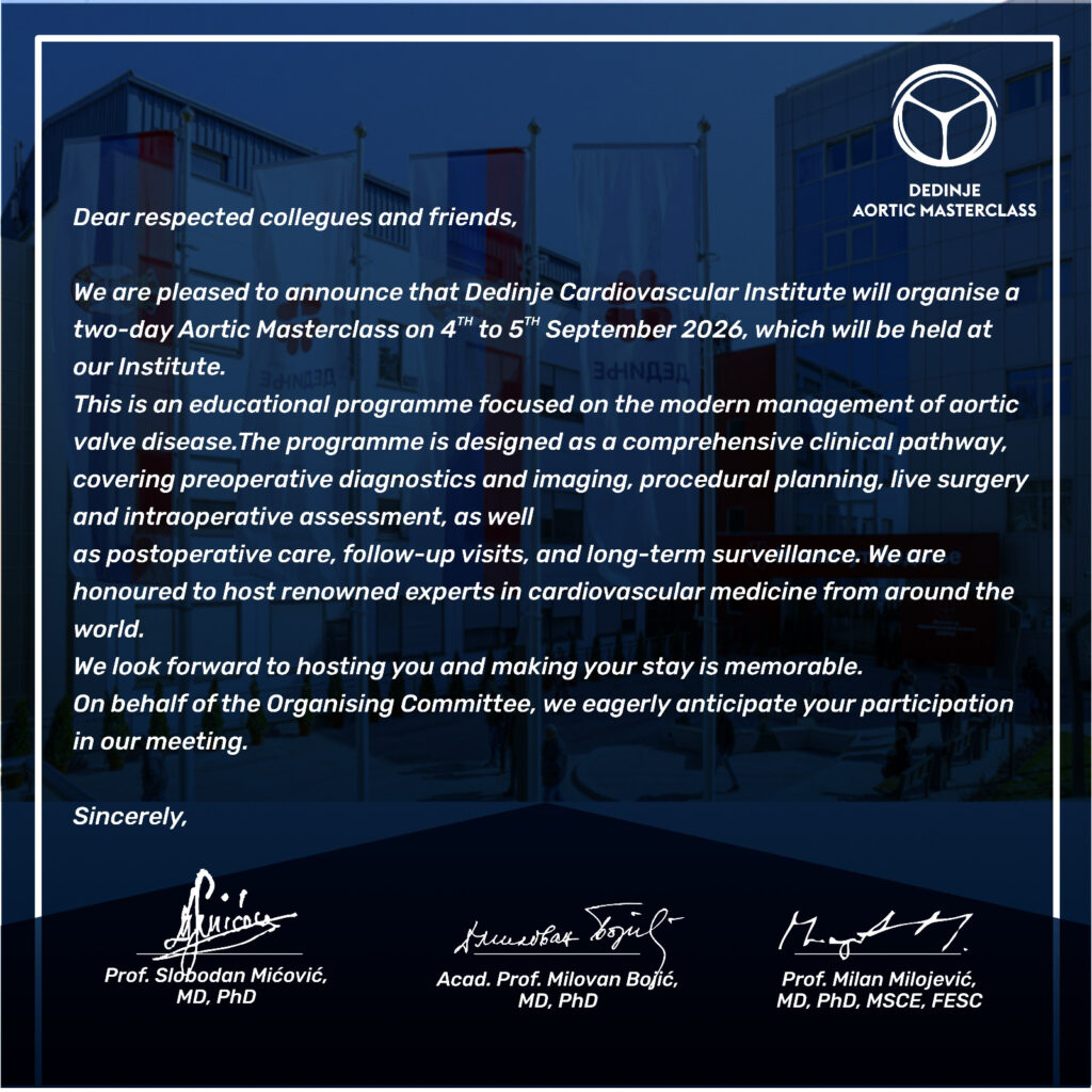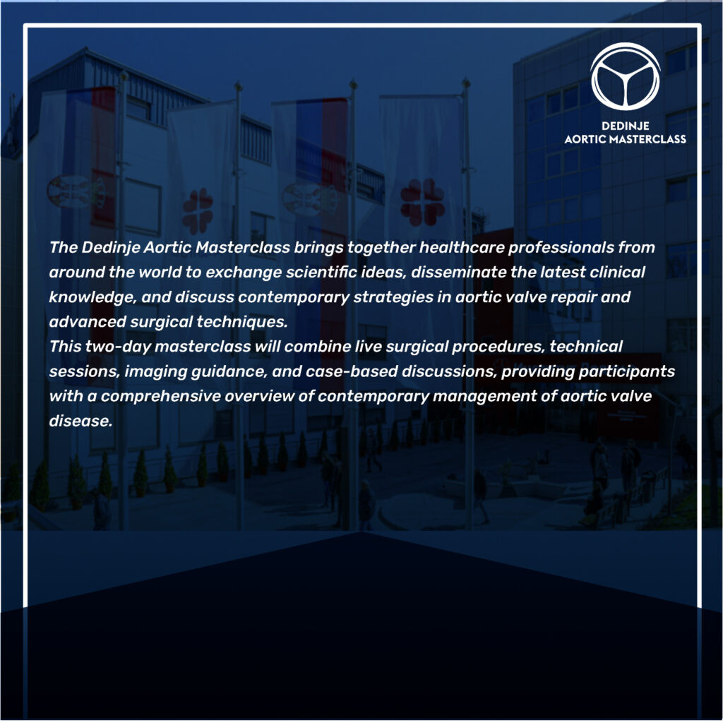 BELGRADE, SERBIA — The Dedinje Cardiovascular Institute has announced it will host a premier two-day “Aortic Masterclass” from September 4th to 5th, 2026. The educational event will focus on the modern management of aortic valve disease, bringing together healthcare professionals from around the globe to discuss advanced surgical strategies.